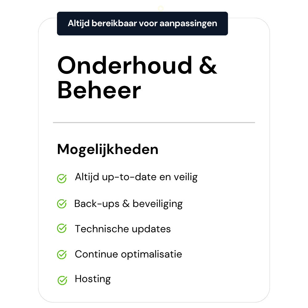 Of je nu net start of al met ons samenwerkt — je kunt ons altijd bereiken met je vragen, ideeën of aanpassingen. We denken mee, kijken direct met je mee en schakelen snel.